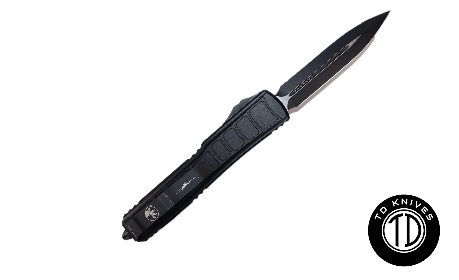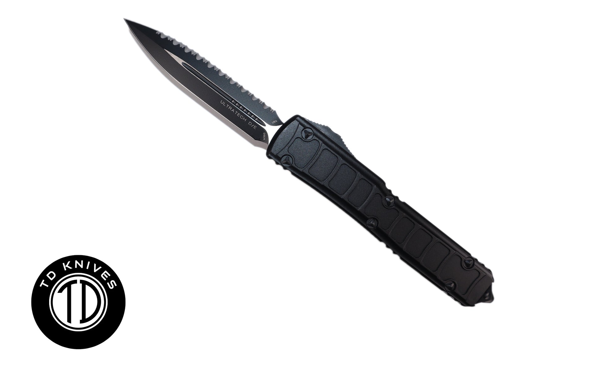 MICROTECH - Signature Series Ultratech II Fully Serrated Double Edge Blade with Step Side Handle in Black with Black Blade Finish. Model # 122II-3TS